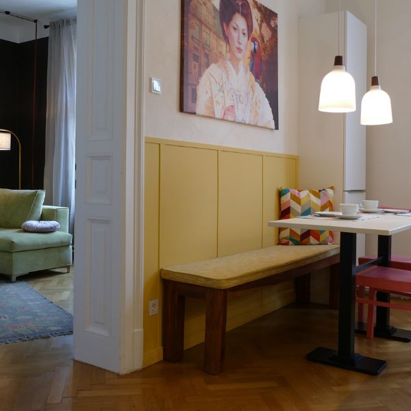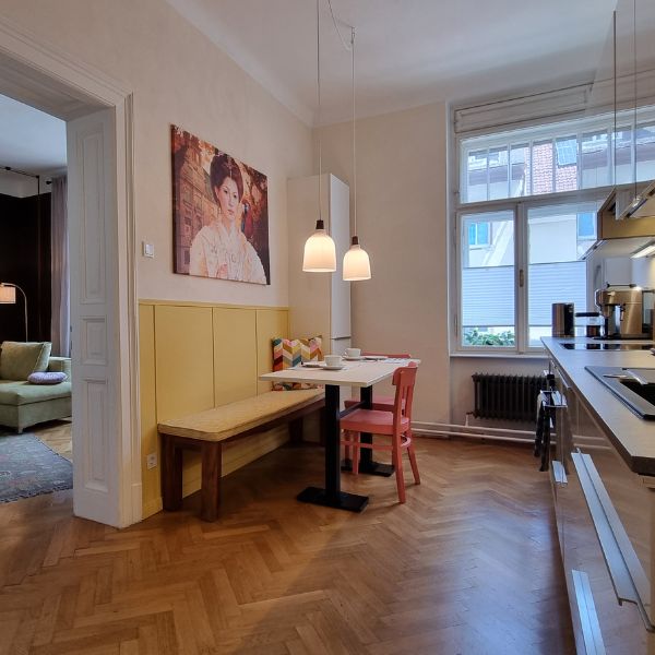 Anno 1903 ist für längere berufliche Aufenthalte buchbar – ob für einen Monat oder ein halbes Jahr. Als sogenannte „Philharmonikerwohnung“ also ein ideales Zuhause auf Zeit für Kulturschaffende während der Festivalsaison, für Gastprofessor:innen und Forscher:innen, für Projektleute oder einfach für alle, die Graz eine Weile ihr Zuhause nennen möchten.