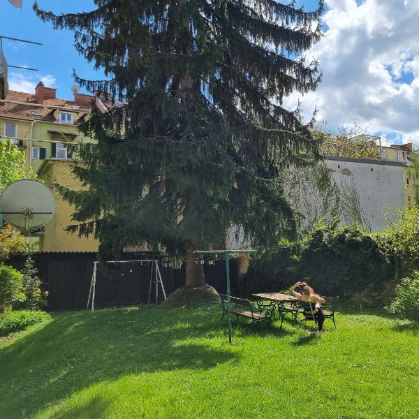 Im Innenhof gibt es einen Garten, der gemeinschaftlich genutzt werden kann.